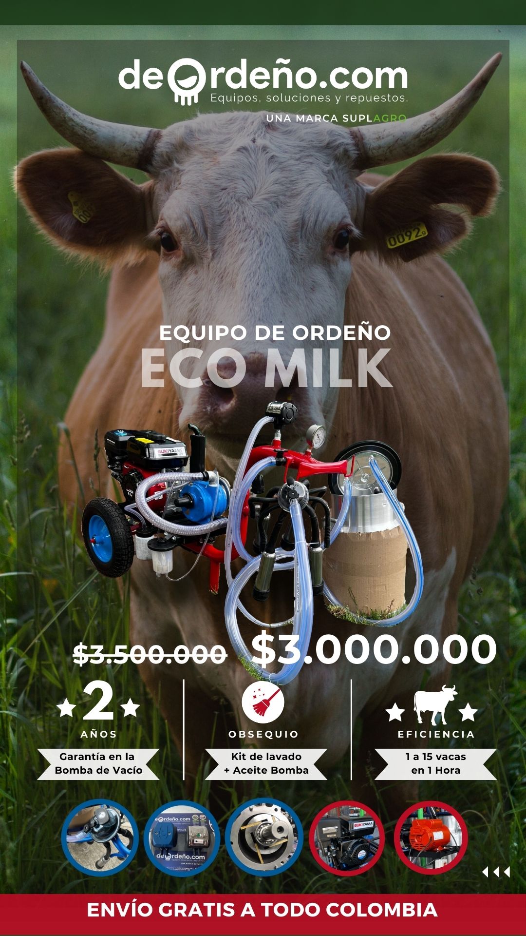 ✅ El más versátil y compacto asequible para el pequeño productor de leche con motor eléctrico ⚡ y/o gasolina ⛽ y cantina de aluminio o plástica, ideal para ordeñar de 10 a 25 vacas en una hora, fácil de transportar a los potreros con rueda grande.