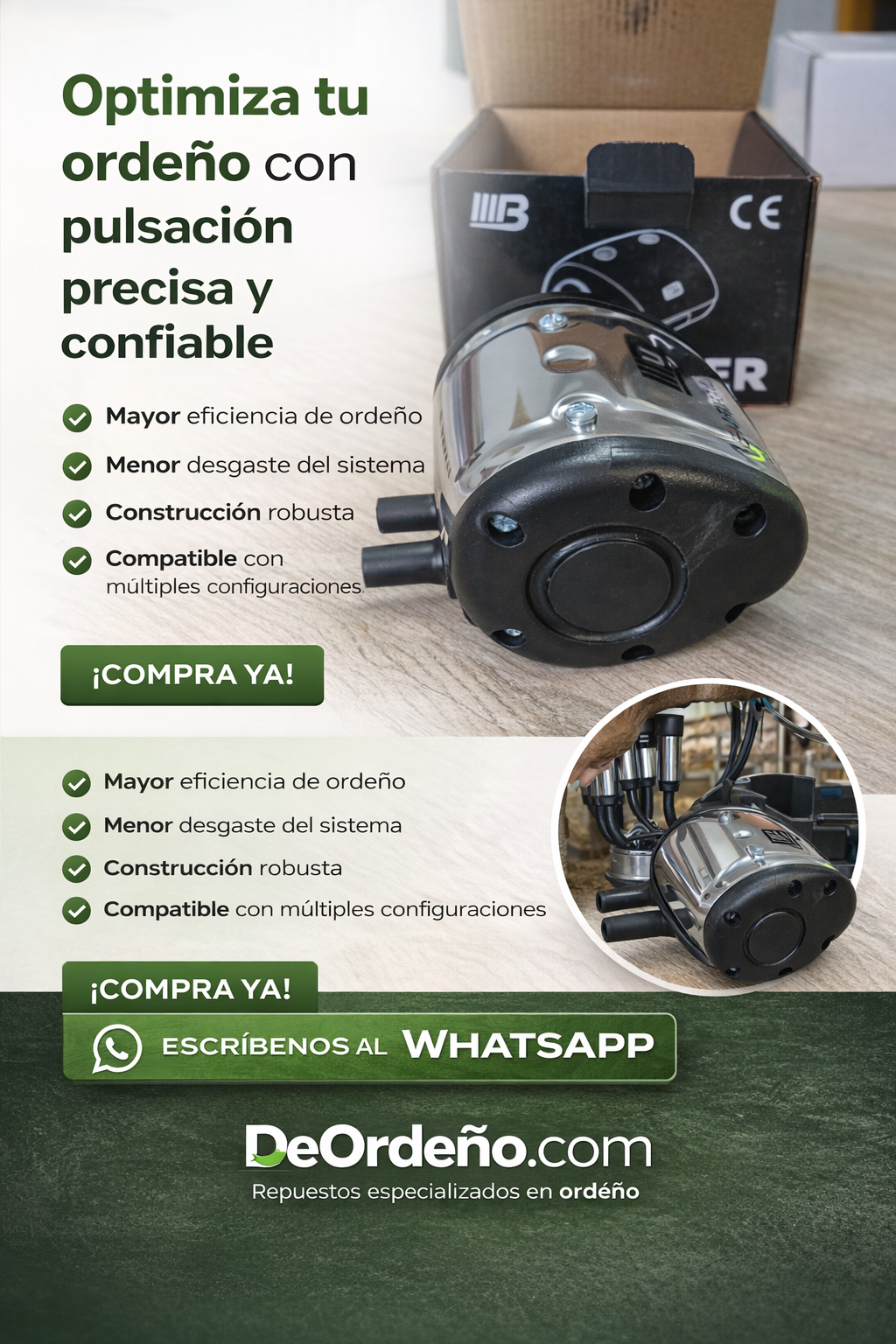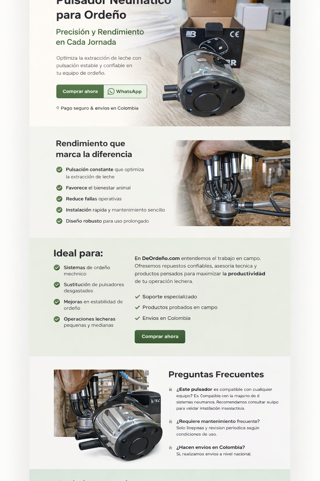 En DeOrdeño.com ofrecemos repuestos y equipos especializados para el sector lechero, con asesoría técnica y respaldo en cada compra.
