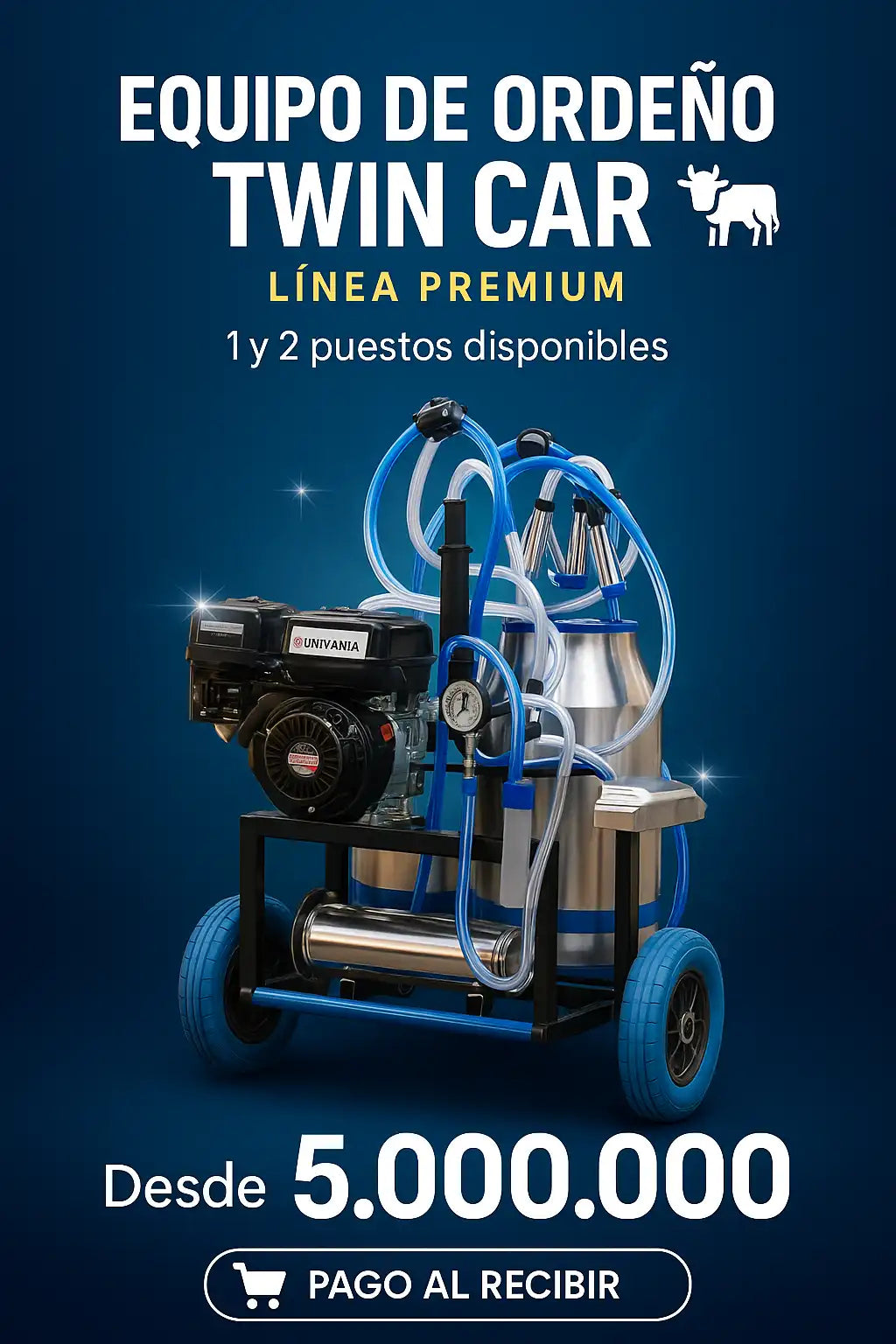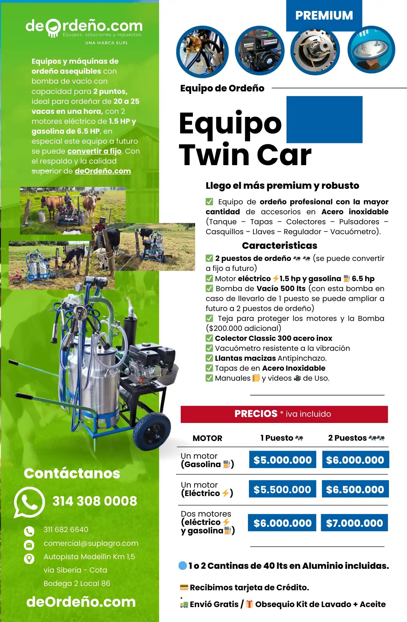 Equipo de Ordeño Twin Car 🐄 - 2 puestos Linea Premium + OBSEQUIOS + PAGUE AL RECIBIR 🚚
