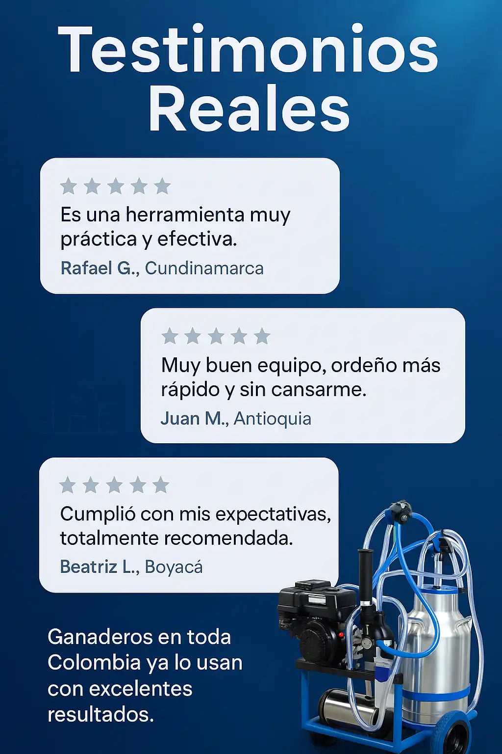 NOTA: En todos los casos los primeros días de ordeño se baja la producción mientras el animal se acostumbra, máximo en una semana ya vuelven a su promedio. El equipo con el tiempo hace que sea más productivo el ordeño y su producción lechera incrementara de un 20 a 30 % generando mejores utilidades para su ganadería.